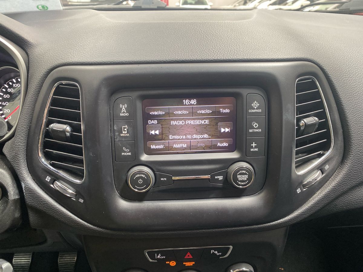 JEEP Compass 2.0 Mjet 103kW Longitude 4×4. Equipado con control de velocidad y limitador, sensores de parking, luces automáticas, sensor de lluvia, pantalla con Bluetooth para llamadas y audio, diferentes modos para la tracción 4×4, etc…